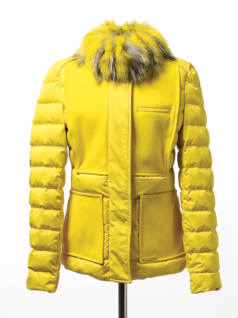 7 여우털 장식으로 럭셔리하게 마무리한 선명한 노란색 패딩 재킷 4백28만원 블루마린.