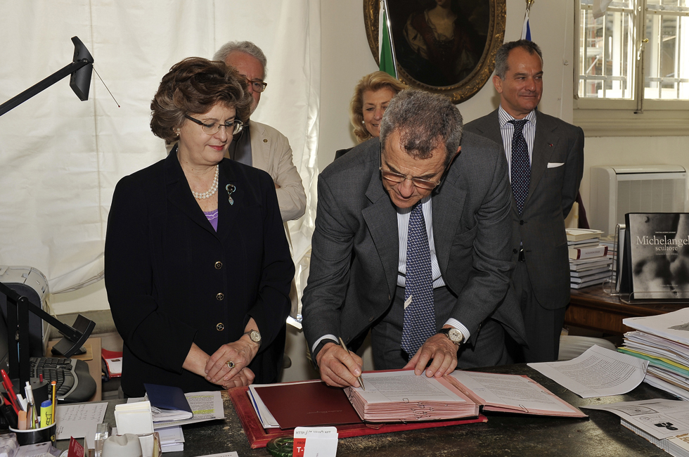 나의 아버지 살바토레 페라가모는 미국에서 이탈리아로 돌아올 때 피렌체를 선택했다. 그 이유는 피렌체가 예술의 도시이고 아버지의 창작욕을 자극했기 때문이다. 그런 면에서 피렌체와 교토는 닮는 점이 많다. 게다가 이 두 도시는 50년째 특별한 관계를 맺어오고 있다. 이런 내용을 피렌체의 전 시장님께 전해 들었을 때 페라가모가 문화적으로 기여할 수 있는 바가 있을 거라 생각했고, 이 프로젝트를 기획하게 되었다. 이것은 우리에게 매우 기쁘고 영광스러운 일이다.