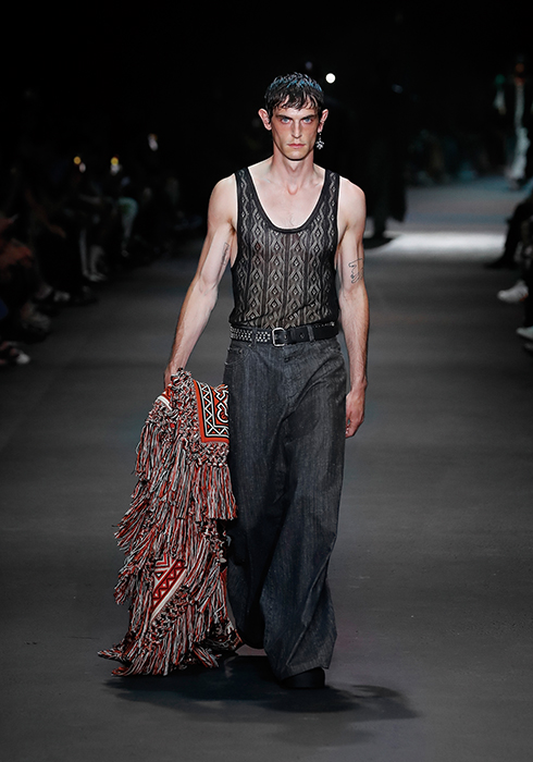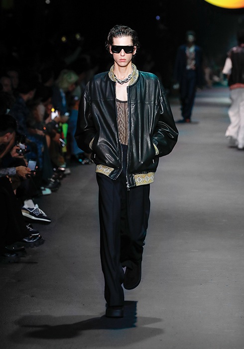 2 바닥에 끌리듯 넉넉한 핏의 팬츠 스타일. 3 에트로 쇼에서 처음 선보이는 에트로X사필로 아이웨어.