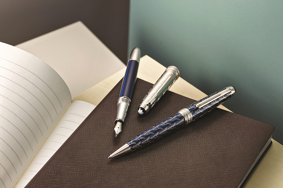 (왼쪽부터) 고전적인 매력을 갖춘 마이스터스튁 르 쁘띠 프린스 두에 만년필 1백34만원, 마이스터스튁 르 쁘띠 프린스 솔리테어 볼펜 1백37만원 모두 몽블랑.