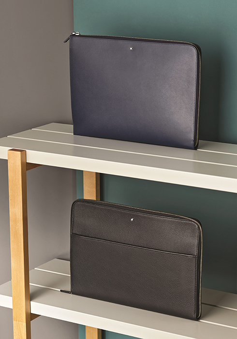 우아한 마이스터스튁 필기구를 클래식 비즈니스 액세서리로 재해석한 마이스터스튁 포트폴리오 네이비 75만원, 소프트 그레인 포트폴리오 77만원 모두 몽블랑.