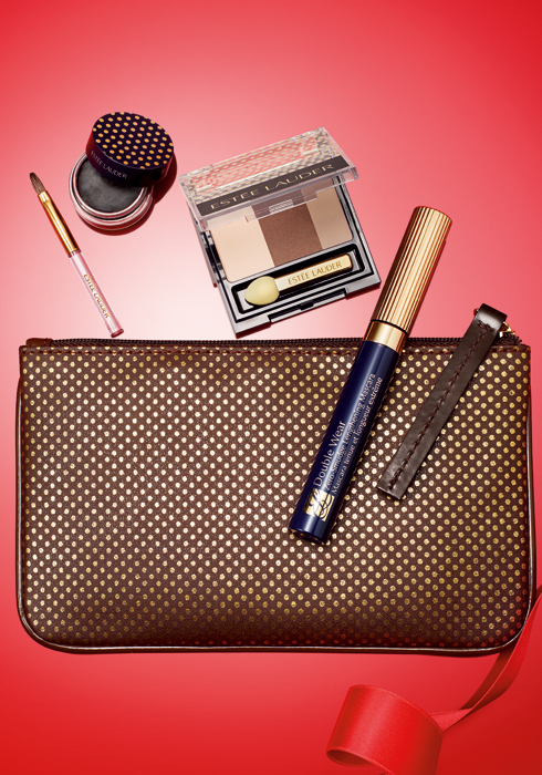 각종 연말 모임, 파티에서 번짐 없이 완벽한 아이 메이크업을 연출할 수 있는 더블 웨어 젤 아이라이너, 마스카라와 그윽한 눈매를 연출할 브라운 계열 아이섀도로 구성했다. 골드 도트 무늬 파우치는 클러치 백으로도 손색이 없다. 5만5천원대.
