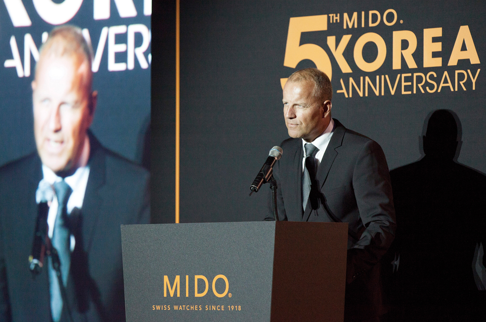 미도에서 대중의 사랑을 가장 많이 받은 제품을 꼽으라면 단연 멀티포트(Multifort) 컬렉션이다. 1934년 출시된 이래로 브랜드의 베스트셀러 자리를 굳건히 지키고 있는 멀티포트는 시드니 하버 브리지의 스틸 구조물에서 영감을 받았다. 이는 스트라이프 음각 때문에 빛이 다각도로 반사되는 독특한 다이얼 디자인으로 꾸준히 사랑받고 있는 아이코닉 모델이다. 이번에 한국 론칭 5주년을 기념하는 특별 한정판 모델 1백 개를 출시한다는 소식이 국내 워치 마니아들 사이에서 뜨거운 이슈가 되고 있는데, ?멀티포트 GMT 코리아 리미티드 에디션’이 그것이다. 일반 시계들은 세계 각 도시를 표기하는 월드 타임 존에 ‘Tokyo’가 자리하는 데 반해, 이 제품에는 ‘Seoul’이 새겨져 있다는 점에서 정말 특별하고도 소장 가치가 있는 시계라 하겠다. 스위스 시계업계가 특정 국가만을 위한 한정판을 출시하는 것은 흔치 않은 일이라는 점에서 볼 때, 미도가 한국 시장을 얼마나 중요하게 생각하고 있는지 짐작할 수 있다. 직경 42mm 케이스와 투명 케이스 백 다이얼을 통해 무브먼트의 움직임을 한눈에 볼 수 있어 미도만의 정교한 컴플리케이션 기술력을 직접 눈으로 확인할 수 있음은 물론, 케이스 백에 스페셜 넘버를 새겨 ‘한정품?이 지니는 매력을 배가시킨다. 지난 10월 13일, 애스턴 하우스에서는 미도 국내 론칭 5주년을 기념하는 이벤트가 열렸다. 이번 행사를 위해 특별히 CEO 프란츠 린더(Franz Linder)가 직접 방한해 한국에 대한 뜨거운 관심을 표했으며, ‘진정한 디자인의 상징(A Mark of True Design)’이라는 브랜드 철학을 더욱 공고히 하겠다는 의지를 동시에 내비쳤다. 미도의 대표 컬렉션 멀티포트 컬렉션 외에 로마의 콜로세움에서 영감을 받아 탄생시킨, 견고한 스틸 브레이슬릿으로 우아한 감성을 재현한 올 다이얼(All Dial), 그리고 파리 에펠탑의 아름다운 곡선과 사선의 매력을 모티브로 한 커맨더(Commander) 등 올해 2015 바젤 워치 페어의 신제품을 선보여 프레스를 비롯한 참석자들의 관심을 모았다. 배우이자 영화감독인 유지태와 현장에서도 유머를 뽐낸 방송인 김영철, 아름다운 여배우 손태영과 이다희, 정겨운 등이 참석해 자리를 빛냈으며, 감미로운 목소리의 뮤지컬 배우 김소현과 손준호 부부가 축하 공연을 펼쳐 깊어가는 가을밤을 음악의 향연으로 수놓았다.