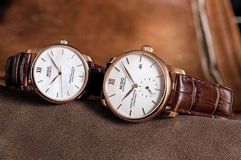 ‘바론첼리 1백 주년 리미티드 에디션 페어 워치’는 렌 오페라하우스의 아름다운 곡선미를 담았다. 남성 모델은 아이보리 톤의 다이얼에 6시 방향 스몰 세컨즈를 적용하고, 여성 모델은 천연 진주 자개 MOP의 다이얼로 장식했다. 남성용 38mm, 여성용 33mm 사이즈로 최신 오토매틱 무브먼트를 탑재한 이 한 쌍의 워치는 로즈 PVD로 코팅 처리한 스틸 케이스로 이루어졌으며 창립 연도에 해당하는 1천9백18개 한정 제작했다. 투명 케이스 백을 통해 고동치는 무브먼트의 생생한 움직임과 미도 로고를 확인할 수 있다.