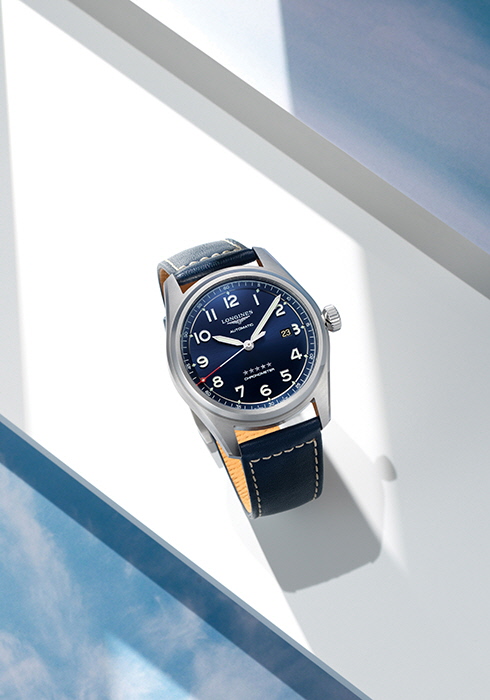 햇살을 담은 선레이 블루 다이얼에 지름 42mm의 스틸 케이스를 매치했다. 셀프 와인딩 무브먼트 L888.4를 탑재했고, 다이얼과 같은 블루 가죽 스트랩을 더해 통일감을 줬다. 스트랩은 스틸로도 선택 가능하다. 3백만원 론진.