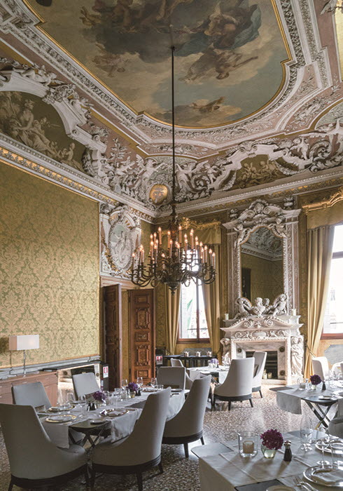 아만과 손잡으면서 호텔로 변신하기는 했지만, 파파도폴리의 후손은 여전히 건물 한쪽에 살고 있다. 물론 그들이 오랫동안 소중하게 가꿔온 정원 역시 건재하다. 호텔 투숙객들이 신선한 공기를 들이켜면서 맛난 아침을 즐길 수 있는 아만 베니스의 정원은 때때로 갤러리나 아티스트와의 협업으로 매력적인 전시 공간이 되기도 한다. 지난해 베니스 비엔날레 기간에는 일본 홋카이도 출신의 세계적인 조각가 칸 야스다(Kan Yasuda)의 전시가 열리기도 했다. 하지만 이 소담스러운 정원은 그저 아만 베니스가 지닌 다양한 매력 중 하나에 지나지 않는다. 원래 호텔로 지은 게 아니라 일상적인 생활 공간이었던 만큼 널찍하고 구조와 동선이 안락한 객실은 물론이고 고아한 품격이 느껴지는 계단과 문, 벽, 천장 같은 인테리어는 오랜 시공을 거친 공간답게 존재감을 뿜어내면서도 21세기에 걸맞은 현대식 시스템을 고루 갖추고 있다. 많은 이들이 꼽는 아만 베니스의 백미는 ‘프레스코(fresco)’다. 그도 그럴 것이 18세기 초 이곳은 티에폴로(Tiepolo) 가문의 소유가 된 역사가 있다. 그래서 아직도 곳곳에 티에폴로 가문의 문장을 볼 수 있고, 네오-바로크풍의 황홀한 서재와 프라이빗 다이닝 룸에도 티에폴로 가문의 숨결이 고스란히 남아 있다. 그리고 무엇보다도 티치아노, 틴토레토, 베로네세 등 16세기 베네치아 거장들의 전통을 이으면서 프레스코화의 대가로 이름을 날렸던 잠바티스타 티에폴로(Giambattista Tiepolo)와 그의 제자들이 그린 작품도 일부 객실과 특별한 공간에서 접할 수 있다. 한 평론가의 말을 빌리자면 미술사상 어느 화가보다도 프레스코화로 많은 벽과 천장을 메운 티에폴로는 ‘경박할 만큼 가벼운 색상’이라는 폄하를 받기도 했지만, 출중한 데생 기술과 타의 추종을 불허할 정도로 다양한 범위의 색과 그림자를 사용한 탁월한 실력, ‘전체’를 꿰뚫어보고 세심하게 계획한 뒤 작업에 임하는 대형 미술 작가로서의 천재성을 갖춘 경이로운 아티스트였다.