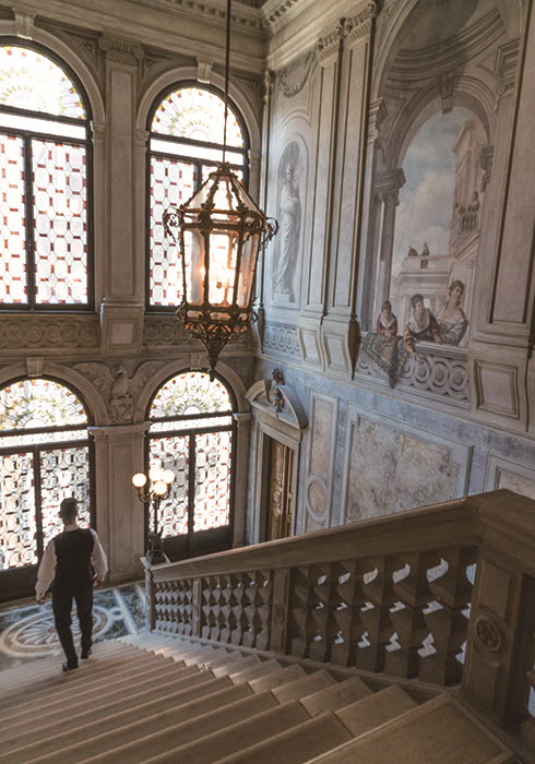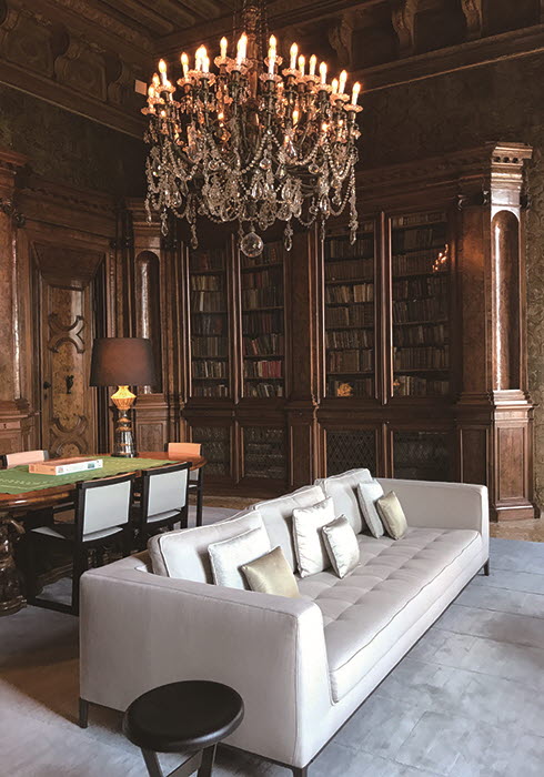 파파도폴리 가문 소유인 팔라초 파파도폴리가 호텔로 변모한 지는 그리 오래되지 않았다. 원래는 1550년부터 존속해온 대저택을 스몰 럭셔리 리조트 브랜드로 유명한 아만(Aman) 그룹에서 5년 전인 2013년 베니스의 ‘잇 플레이스’로 낙점해 ‘아만 베니스’라는 호텔로 탈바꿈시킨 곳이기 때문이다. 이듬해 베니스에서 결혼식을 치른 할리우드 스타 조지 클루니가 허니문 장소로 택하면서 세계적인 유명세를 타기는 했지만, 사실 아만 베니스는 이미 16세기 중반부터 존속해온 명소의 재탄생인 셈이다. 이곳은 처음에는 부유한 무역상이던 코치나(Coccina) 가문에서 16세기에 활동한 건축가 잔자코모 그리기(Giangiacomo Dei Grigi)에게 의뢰해 지은 저택이었는데, 수백 년에 걸쳐 여러 손을 거치다가 19세기 중반에는 현 소유주인 파파도폴리 가문의 차지가 됐다. 당시 파파도폴리가 사람들은 네오-르네상스와 로코코 스타일을 이끈 미켈란젤로 구겐하임(Michelangelo Guggenheim)에게 건물 내부 리모델링을 맡겼다. 구겐하임(미국의 구겐하임 집안과는 상관없는 인물)은 나선형으로 우아하게 뻗은 계단이며 선장, 문손잡이 등에 가문의 문장(紋章)을 새겨 넣었고, 베니스 최초의 엘리베이터와 전기로 작동하는 샹들리에를 설치했다. 그리고 보다 완벽한 보금자리를 창조하기 위해 풍성한 녹음을 자랑하는 근사한 정원을 새로 만들었다. 그래서 팔라초 파파도폴리는 카날 그란데에서 드물게 규모 있는 정원으로 명성이 자자했다. 릴케는 ‘(베니스에서) 반드시 보아야 할 곳은 파파도폴리의 아름다운 정원입니다’라는 기록을 남기기도 했다.