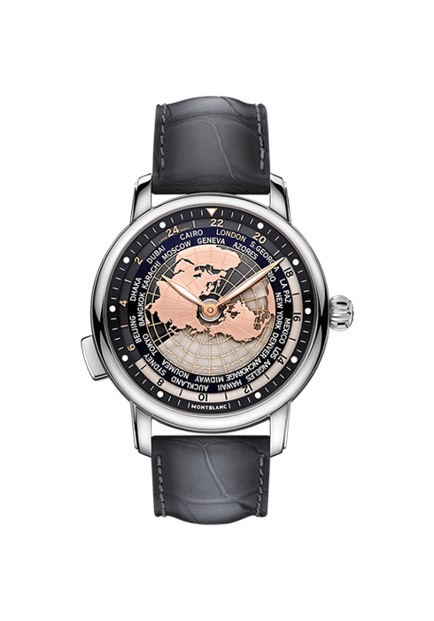 한눈에 세계 시간을 확인할 수 있는 기능과 미네르바 포켓 워치의 우아한 미학적 코드를 접목한 몽블랑 레거시 오르비스 테라룸. 시계의 이름은 라틴어로 세계, 지구, 세상을 의미하는 오르비스 테라룸(Orbis Terrarum)에서 유래했으며, 회전 디스크의 그레이 색조 변화를 통해 낮과 밤 디스플레이를 직관적으로 확인할 수 있다. 로즈 골드로 코팅한 대륙과 자오선이 있는 블랙 및 그레이 다이얼, 그리고 다크 그레이 앨리게이터 스트랩이 조화를 이뤄 대담하고 현대적인 미학을 선보인다. 9백19만원. 문의 1877-5408