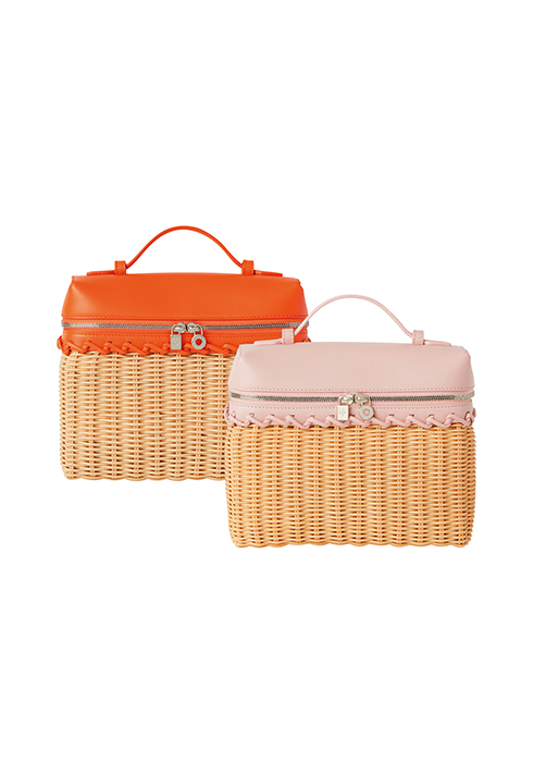 로로 피아나의 대표 백인 엑스트라 포켓 위커 백이 이번 2023 리조트 컬렉션에서 재탄생했다. 기존 스퀘어의 각 잡힌 아이코닉한 형태는 그대로 유지하되 라피아 소재로 베리에이션을 주어 서머 시즌과 더 잘 어울리도록 변모한 것이 특징. 베이비 핑크 컬러 가죽 버전과 오렌지 컬러 가죽 버전으로 컬러 변주를 주어 개성에 맞게 선택 가능하도록 했다. 장인 정신을 바탕으로 수작업으로 완성해 세심하고 디테일한 면모까지 돋보인다. 휴양지에서나 일상생활 등 어디에서든 웨어러블하게 매치 가능한 실용성까지 갖췄다.