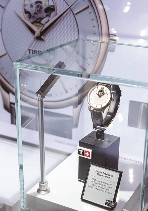 7 무브먼트의 움직임을 확인할 수 있는 티쏘 트래디션 오픈 하트.