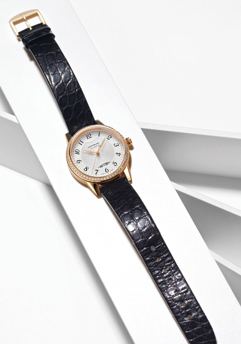 데이트 오토매틱 클래식한 여성 시계를 원하는 이들을 만족시킬 몽블랑의 우아한 보헴 컬렉션. 오토매틱 무브먼트를 장착한 레드 골드 버전으로 30mm 지름의 다이얼, 다이아몬드 세팅 베젤로 화려함을 더했다. 여성의 플리츠스커트에서 영감을 받은 다이얼의 기요셰 패턴이 브랜드의 가치를 더욱 높인다.