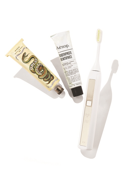 싱그러운 사과를 닮은 ‘뽐 드 몽토방’ 향이 기분 좋은 상쾌함을 주는 오피아 당테르. ‘천연 계면활성제’라 불리는 저자극성 비이온 계면활성제를 함유해 충치 예방에 효과적이며 인체에 무해하다. 한국 익스클루시브 제품. 75ml, 3만9천원 불리 1803. 문의 1544-5114. 에센셜 오일을 사용해 세정제 특유의 쓴맛을 줄이고 이솝 고유의 풍미를 살린 투스페이스트. 부드러운 연마제인 탄산칼슘을 함유해 플라크와 음식 잔여물을 효과적으로 제거하는 동시에 치아 손상을 최소화한다. 면세점 단독 판매. 60ml, 1만5천원 이솝. 문의 1800-1987. 고주파 에너지로 치아 표면에 강하게 부착된 치석과 플라크를 효과적으로 제거해 치은염 예방 및 미백 효과가 뛰어난 전동 칫솔 39만원 실큰. 문의 080-246-1234