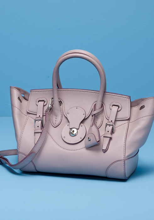 브랜드를 대표하는 아이코닉한 가방이자 웨딩 백 리스트로 매 시즌 상위에 오르는 소프트 리키 백. 부드러운 파스텔컬러도 인기가 높다. 27X20cm, 2백20만원대 랄프 로렌.