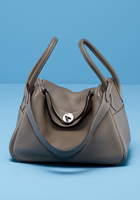 정교한 화이트 스티치와 가방 앞쪽이 자연스럽게 처진 형태가 멋스러운 송아지가죽 소재의 린디 백. 25.5X17.5cm, 8백만원대 에르메스.