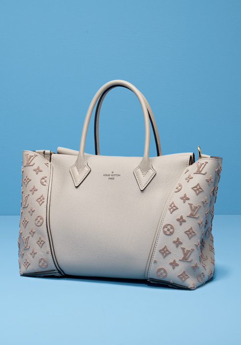 가방 양쪽 사이드에 브랜드 로고를 스웨이드 엠보 처리해 고급스러움이 묻어나는 쇼퍼 백. 실용적인 형태지만 우아한 컬러와 소재 덕분에 포멀한 옷차림에도 잘 어울린다. 35X24.5cm, 5백만원대 루이 비통.