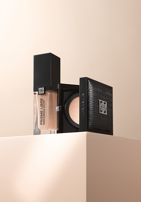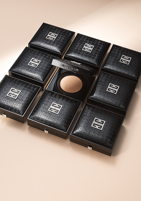 스킨-케어링 효과로 메이크업하는 내내 피부 겉뿐 아니라 속까지 수분과 윤광을 선사해줄 단 하나의 지방시 뷰티 쿠션과 파운데이션.