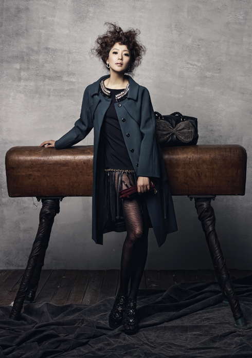 태슬 디테일의 블랙 원피스 3백1만원, 라운드넥 그린 컬러 코트 3백44만원, 리본 모티브 가방 1백55만원 모두 모스키노. 볼드한 디테일의 블랙 하이힐 40만원대 더 슈. 와인 컬러 장갑 50만원대 구찌. 유성을 형상화한 화이트 골드에 다이아몬드를 세팅한 이어링은 2천4백82만원 샤넬 화인주얼리.