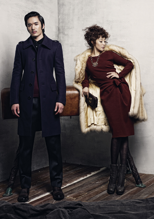 (남자) 블랙 셔츠 14만원대 니나 리치. 네이비 코트 3백만원대 버버리 프로섬. 블랙 팬츠, 브라운 슈즈 각 1백만원대 모두 YSL.
