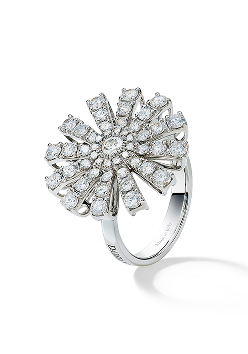 2 대담한 실루엣과 볼륨감을 자랑하는 화이트 골드와 다이아몬드 소재의 마르게리타 링.