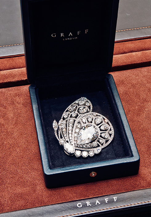 하이 주얼리가 대접받는 이유는 우리가 잘 알다시피 희소성 때문이다. 그 희소성에는 원석의 산출량, 보석 자체의 완성도와 가치, 장인 정신이 스며든 아름다운 세공, 브랜드 등 여러 요소가 포함돼 있다. 모든 면에서 ‘희소함의 궁극’임을 자처하는 영국의 하이 주얼리 브랜드 그라프가 좀처럼 보기 어려운 컬렉션을 서울에서 전시해 화제를 모았다. 지난 11월 중순 서울 신라 호텔 1층에 자리 잡은 그라프 살롱에서 열린 이 전시회를 위해 다이아몬드 가치로 1억1천만달러에 해당된다는 진귀한 보석과 하이엔드 시계 등 60여 점의 작품이 런던에서 날아왔다. 런던에는 그라프의 모든 작품을 손으로 제작하는 브랜드 최대 규모의 공방이 있는데, 여기에서 보유한 명작을 다수 볼 수 있는 희소한 전시회인 셈이다. 특히 지난 9월 파리에서 열린 앤티크 비엔날레에 전시된 주얼리를 비롯해 5백50캐럿짜리 원석 ‘레츠엥 스타(Let?eng Star)’에서 태어난 나비 브로치, 그라프의 상징과도 같은 클래식 버터플라이 컬렉션, 그리고 루비의 향연이 매혹적인 최신작 리듬 컬렉션, 주얼리 워치의 정점을 보여주는 듯한 눈부신 다이아몬드 시계 등이 눈길을 사로잡았다.