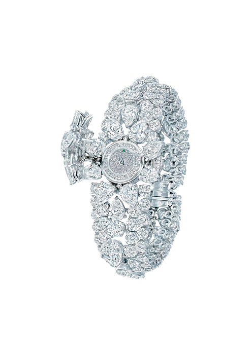 ‘다이아몬드의 왕’이라고 불리는 그라프의 창업주 로렌스 그라프는 완벽한 세팅에 세심하게 주의를 기울이는 완벽주의자로 유명하다. 그래서 그라프의 디자인에는 때로는 수백 시간이 걸린다고. 이번 전시회에서는 음악적인 요소를 강조하는 세팅의 미학을 보여주는 ‘리듬 컬렉션(Rhythm Collection)’도 큰 주목을 받았다. 국경을 초월하는 언어이자 시간을 넘어서는 매체인 음악에서 영감을 받아 제작한 컬렉션으로, 그라프의 마스터 장인들은 마치 열정적인 작곡가가 선율 하나하나에 열정을 불어넣듯이 작업에 공을 들였다는 후문이다. 이 밖에 그라프가 최근 야심차게 부각하고 있는 각종 럭셔리 워치도 눈부신 볼거리였다. 뱀처럼 똬리를 틀고 있는 모양새의 팔찌에 뚜껑을 열면 앙증맞은 시계가 숨어 있는 ‘서펜타인 시크릿 워치(Serpentine Secret Watch)’ 같은 황홀한 하이엔드 주얼리 워치를 비롯해 스위스에서 제작되는 정교한 무브먼트를 장착한 남성미 넘치는 세련된 다이아몬드 시계도 눈에 띄었다. 그라프의 모든 럭셔리 워치는 ‘인비저블 모자이크 세팅(Invisivle Mosaic Setting)’이라는, 특허 받은 디자인 요소를 품고 있는데, 2개의 삼각형 다이아몬드 사이에 육각으로 커팅한 다이아몬드를 넣는 방식이다. 프랑스의 사상가 질 리포베츠키는 “럭셔리란 사람의 재능을 통해 사물이 완벽해지는 것”이라고 정의한 적이 있다. 요즘 하이엔드 주얼리와 시계가 뿜어내는 미학적인 완성도와 정교하면서도 아름다운 메커니즘을 보고 있노라면 그러한 발언에 동감할 수밖에 없다.