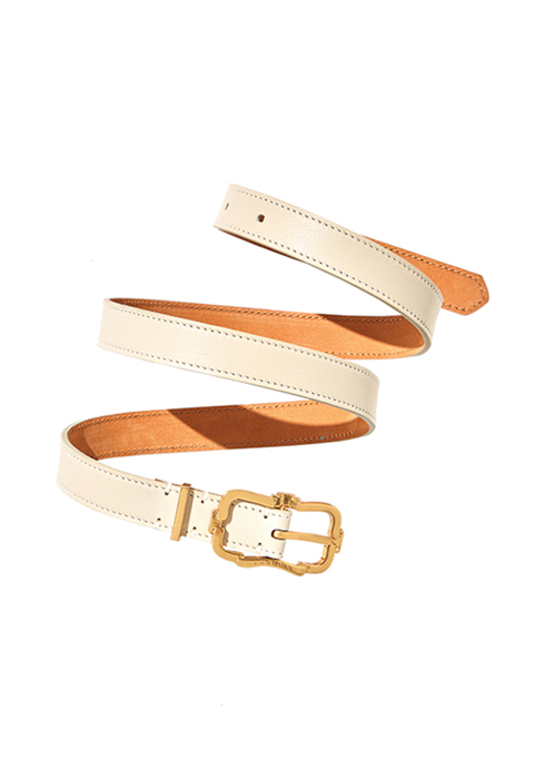 100% 송아지가죽에 비스킷 로고 버클이 포인트를 더하는 씬 로고 벨트 78만원 아뇨나.