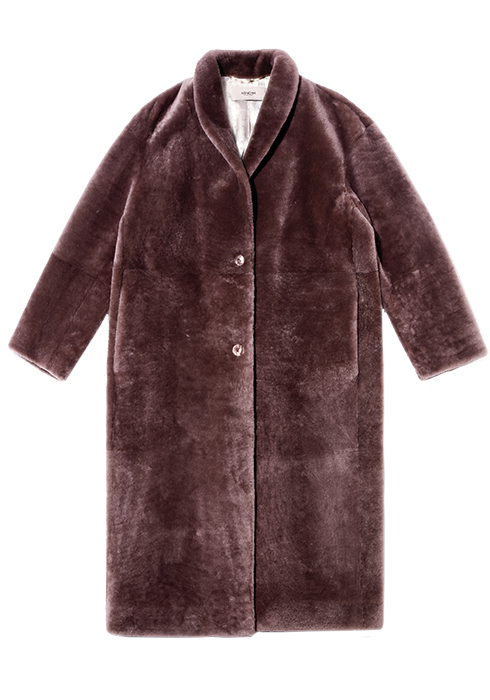 고급스러운 자개 단추로 포인트를 준 램 시어링 롱 코트 가격 미정 아뇨나.