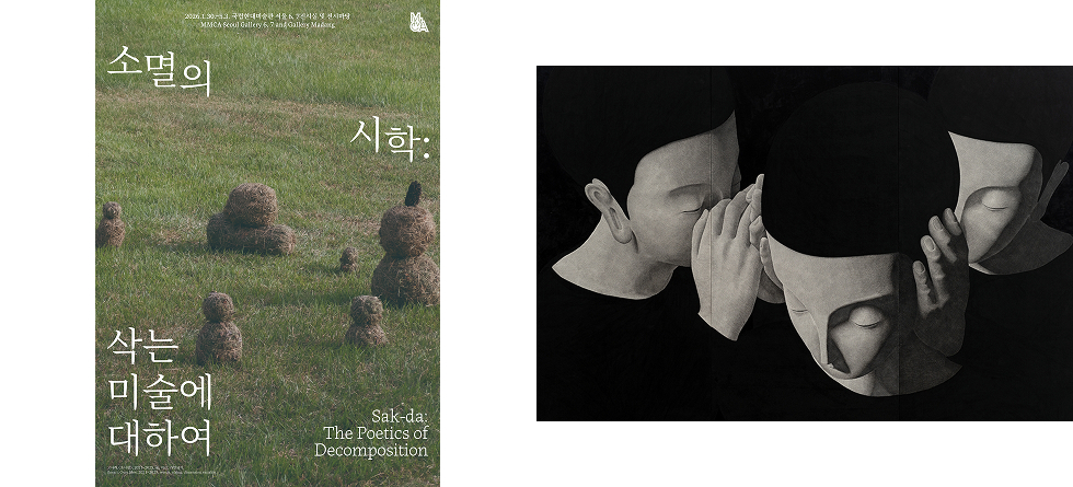 | 국립현대미술관 〈소멸의 시학: 삭는 미술에 대하여〉 MMCA 서울관에서는 시간 속에서 변하고 사라지는 과정을 전제로 한 작업을 ‘삭는 미술’이라는 개념 아래 소개하며, 보존과 영속성 중심의 미술 제도에 질문을 던진다. 고사리, 델시 모렐로스, 미래 재료 Х 그린 레시피 랩 등이 참여한다. 김영은, 임영주, 김지평, 언메이크랩 등 네 팀이 후보에 오른 〈올해의 작가상 2025〉는 역시 서울관에서 2월 1일까지 진행된다. 과천관에서는 한국 현대 도예의 확장된 궤적을 조망하는 〈신상호: 무한변주〉가 3월 29일까지, 청주관에서는 1세대 모더니스트들의 예술을 다룬 <조우(遭遇), 모던아트협회 1957-1960>이 3월 8일까지 열린다.