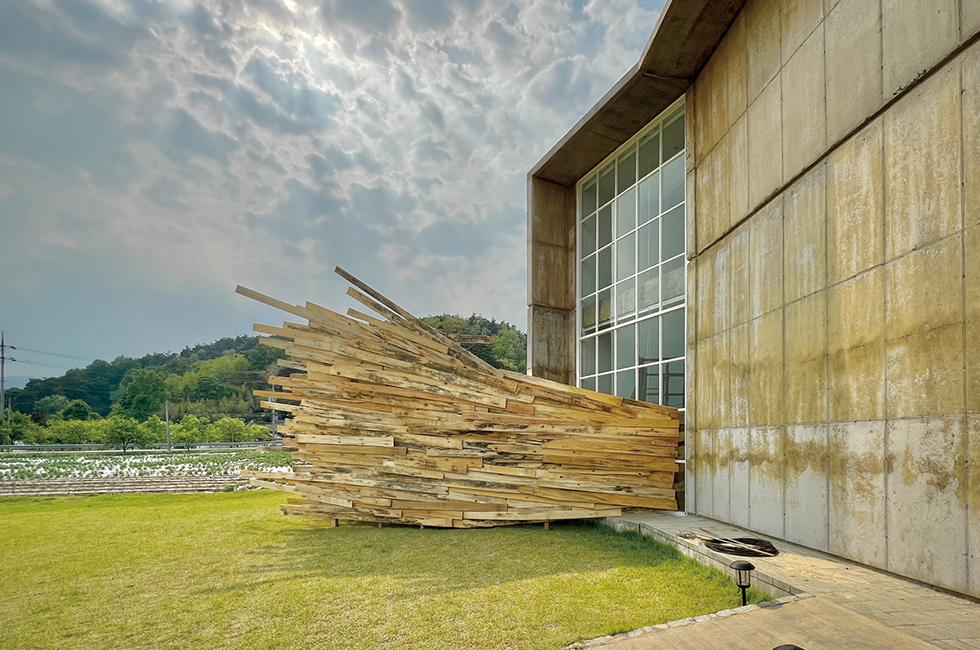김태호, ‘높새바람’(2023), 10×3.5×1.5m, 소나무 판재, 이미지 제공_대추무 파인아트