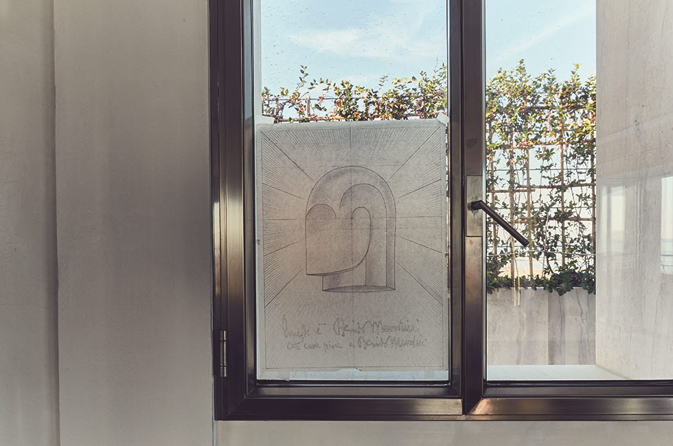 2 릭 오웬스는 주 무대로 활동하는 파리, 공장이 있는 이탈리아 콩코르디아(Concordia)에 이어 베니스 리도 섬에 여름 별장을 마련했다. 하지만 그전에도 상대적으로 한적하면서도 베니스 비엔날레 같은 아트 행사와 전시를 손쉽게 즐길 수 있는 리도 섬에서 여름휴가를 보내왔다. 창가에 있는 긴 조각상은 이탈리아 미래주의 작가 타이야트(Thayaht)의 ‘Altoparlante Italico’(1935).