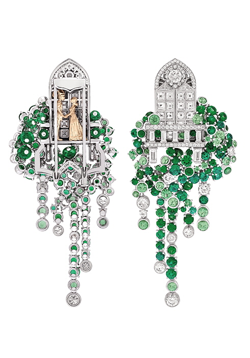 이번 로미오와 줄리엣 하이 주얼리 컬렉션에서 제가 가장 아끼는 피스는 작은 비둘기로 장식한 스노위 도브(Snowy Dove) 클립입니다. 셰익스피어의 원작을 보면, 로미오가 줄리엣을 비둘기에 비유하는 구절이 등장합니다. 이 장면을 떠올리게 해주는 사랑스러운 피스이기에 더욱 좋아합니다. 다른 한 피스는 ‘러버스 패스(Lover’s Path)’라는 3개의 에메랄드를 세팅한, 아주 인상적인 디자인을 자랑하는 브레이슬릿입니다. 이 피스를 완성하는 에메랄드의 아름다움이 감동적입니다. 놀라운 사실은 메종의 스톤 구매 담당자가 3개의 스톤을 한번에 구매하지 않았다는 것입니다. 하나를 먼저 구매하고 뒤이어 또 하나를 구매했습니다. 이렇게 잘 어울리는 서로 다른 스톤을 3개나 보유하게 되었다는 것은 흔치 않은 일입니다.
