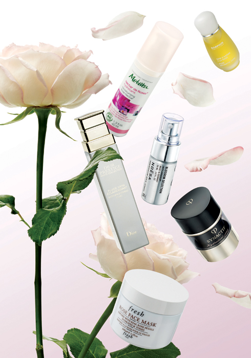 보기에도 아름다운 장미는 피부에도 좋다. 향을 맡는 것만으로도 스트레스, 불안, 우울증을 억제하는 장미 성분은 피부에 바르면 뛰어난 재생, 항염과 진정, 피부 톤 개선 효과를 발휘한다는 사실. 장미 꽃잎과 같이 부드러운 핑크빛 피부로 가꾸고 싶다면 피부에 생기를 되찾아줄 장미 성분에 주목하라. (아래부터 시계 방향으로) ‘프레쉬 로즈 페이스 마스크’는 2.2톤의 장미꽃에서 단 1kg만 얻을 수 있는 고귀한 성분을 담은 수분 마스크. 수딩 작용이 뛰어난 젤 타입의 쿨링 마스크로 자극받은 피부를 빠르게 진정시킨다(100ml 8만2천원). ‘디올 프레스티지 화이트 컬렉션 사틴-브라이트닝 플루이드’는 디올의 독보적인 성분인 로즈 드 그랑빌을 함유해 피부 속 염증을 차단하고, 피부의 신진대사를 활성화해 탄력을 선사한다(50ml 42만원). ‘멜비타 모이스처라이징 로즈 넥타 크림’은 100% 유기농 와일드 로즈, 로사 카니나 장미를 담아 풍부한 보습과 진정 효과를 자랑하는 보습 크림. 피부 깊숙이 차오르는 수분감을 선사한다(40ml 7만원). ‘달팡 로즈 아로마틱 케어’는 오가닉 로즈 아로마 오일, 이브닝 프라임 로즈 오일을 블렌딩해 피부에 부드러운 윤기와 생기를 더하는 아로마 오일. 생리 전 향을 맡으면 심신을 안정시킨다(15ml 8만원). ‘노에사 블로썸 셀렉션’은 수만 송이의 장미에서 추출한 향을 담은 로션 타입의 아로마 퍼퓸. 인공 향과 보존제가 함유되지 않은 자연 그대로의 향으로, 가장 순수한 다마스크 장미 향을 느낄 수 있다(30ml 가격 미정). ‘끌레드뽀 보떼 이드라땅 쥬르’는 낮 동안 피부를 효과적으로 보호해 광채와 탄력을 유지해주는 낮 전용 모이스처라이저. 11년간의 연구로 개발한 로즈 향을 담아 스킨케어 시 지친 심신을 편안하게 달래준다(20ml 27만원).