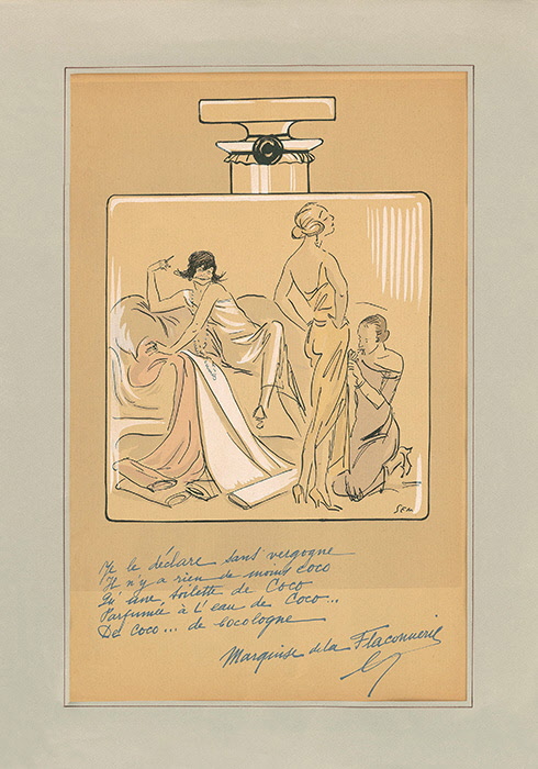 1920년 가브리엘 샤넬이 파리지엔의 패션을 주도할 때, 샤넬은 러시아 황제의 사촌 드미트리 공작과 함께 친구인 화가 호세 마리아 세르와 그의 아내 미시아를 만나기 위해 몬테카를로로 향했다. 그들은 당시 그 지역의 예술 세계에 완전히 빠져 있었다. 어느 날 대화 중 향수를 만들어보자는 아이디어가 나왔다. 당시만 해도 향수 제작자가 아닌 패션 디자이너가 향수를 만든다는 것은 매우 획기적인 아이디어였는데, 샤넬은 이러한 새로운 도전에 관심을 보였다. 여기서부터 꽃의 땅이며 온기가 가득한 프랑스 남부 지방에 샤넬 N°5가 최초로 뿌리를 내렸다. 아이디어 단계부터 참여한 이 인물들은 미래 샤넬 향수가 지향하는 ‘향의 철학’을 정립하는 데 영향을 미친다. 프랑스적인 가브리엘 샤넬의 클래식한 근엄함과 바로크 골드에 대한 애정, 그리고 조향사 에르네스트 보와의 조우는 독보적인 향수 탄생의 서막이었다.