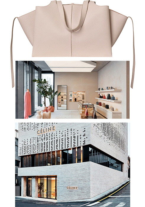 동시대를 사는 가장 모던하고 세련된 여성의 상징, 프랑스 명품 브랜드 셀린느(Celine)의 한국 첫 플래그십 스토어가 지난 3월 10일 청담동에 오픈했다. 이는 아시아 첫 단독 매장으로, 전 세계의 주목을 받으며 새로운 패션 도시로 급부상한 청담동의 명성을 이어갈 또 하나의 랜드마크로 단번에 자리매김했다. 대중적으로 잘 알려진 셀린느의 백 컬렉션은 물론, 브랜드의 꽃이라 할 수 있는 의류 컬렉션까지 모두 한곳에서 만나볼 수 있기에 더욱 매력적이다. 브랜드 특유의 모던하고 미니멀한 디자인으로 여성들이 하이엔드 패션 브랜드 중 가장 입고 싶은 옷으로 꼽는 셀린느의 매장은 과연 어떤 모습일까? 먼저 1층 입구에 들어서면 가장 먼저 눈에 띄는 스몰 레더 제품부터 가방을 포함한 다양한 가죽 제품이 전시되어 있고, 계단을 따라 2층으로 올라가면 의류(RTW)와 슈즈가 전시되어 있으며 편히 앉을 수 있는 라운지와 프라이빗한 VIP 공간이 펼쳐진다. 자세히 살펴보면 셀린느가 이 공간 하나하나를 채우기 위해 얼마나 세심하게 공들였는지 알 수 있다. 1층 바닥은 콘크리트와 작은 자갈로 이루어진 테라조(terrazzo)로, 2층은 또 다른 콘셉트의 대리석 마루로 제작했다. 이는 모두 프랑스 본사에서 직접 공수한 작품이라고. 또 스토어의 벽면은 오프 화이트 색상의 마모리노 플래스터(marmorino plaster) 석고로 마감했으며 모든 선반은 나보나 트래버틴(navona travertine) 대리석으로 만들었다. 그리고 곳곳엔 엷은 적갈색의 벽돌식 파사드가 설치되어 있으며, 오닉스, 나무, 콘크리트 큐브, 세라믹 스툴 등과 함께 여러 종류의 화분이 생기를 더한다. 뿐만 아니라, 덴마크의 아티스트 포스(FOS)가 디자인한 램프, 콘크리트와 나무로 제작한 의자, 적갈색 화기 등과 같은 비스포크 오브제가 셀린느의 세련된 스타일을 더욱 돋보이게 한다. 이렇듯 정교한 라인과 세심한 디테일, 기능성을 부각하는 한편, 무게감과 여성스러움을 스토어 전반에 부여했다. 새로움을 원한다면 영원함과 모더니티, 견고함과 편안함이 동시에 느껴지는 셀린느 청담 플래그십을 둘러보길.