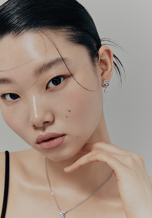 상징적인 숫자 5를 모티브로 완성한 이터널 N°5 이어링. 숫자 5를 행운의 상징으로 여긴 가브리엘 샤넬과 샤넬 향수 N°5에서 영감받아 정교한 세공으로 제작한 이터널 N°5 네크리스. 화이트 골드 플레이트에 0.01캐럿 라운드 컷 다이아몬드와 총 0.38캐럿의 다이아몬드 24개를 이상적인 배열로 세팅해 미세한 움직임에도 눈부시고 미묘한 광채를 발한다. 체인의 길이를 조절할 수 있는 링으로 네크리스를 길거나 짧게 착용할 수 있다. 모두 가격 미정 샤넬 화인 주얼리.