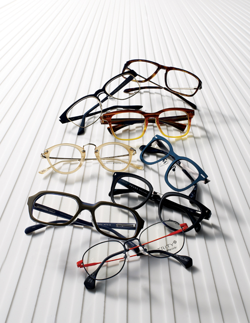젊고 활기찬 느낌을 주는 브라운과 옐로의 투톤 컬러 안경. 은근한 결 무늬의 프레임으로 한층 고급스러워 보인다. 10만원대 울프강프록쉐 by 옵티컬 W. 가볍고 착용감이 좋은 소재로 잘 알려진 티타늄 소재의 블루 컬러 안경. 블랙 수트에 연출하면 트렌디하면서도 이지적인 룩을 완성할 수 있다. 19만5천원. 트리티 by 프로덕트 서울