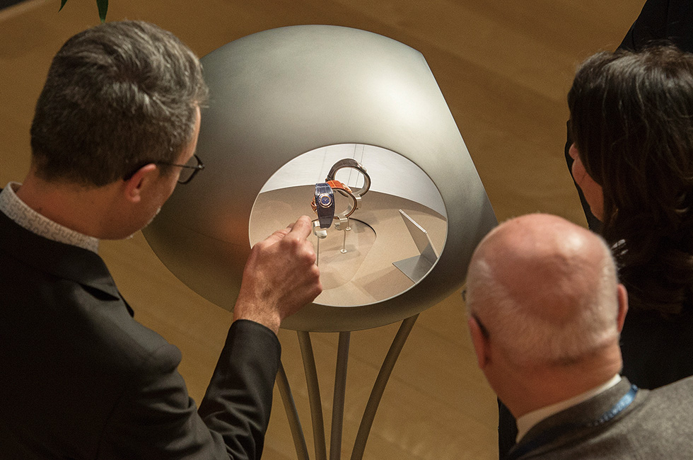 | 바젤월드의 또 다른 재미는 경이롭기까지 한 장인의 제작 과정을 직접 볼 수 있다는 점이다. 블랑팡 부스에서 목격한 장인의 시연 모습. |