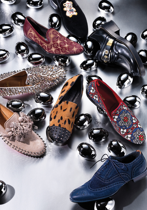 한껏 멋 부린 남성 구두가 디스코 음악에 맞춰 온몸을 들썩거리게 한다. 과감한 디테일로 당신의 스타일 지수를 화끈하게 높여줄 화려한 남성 구두.