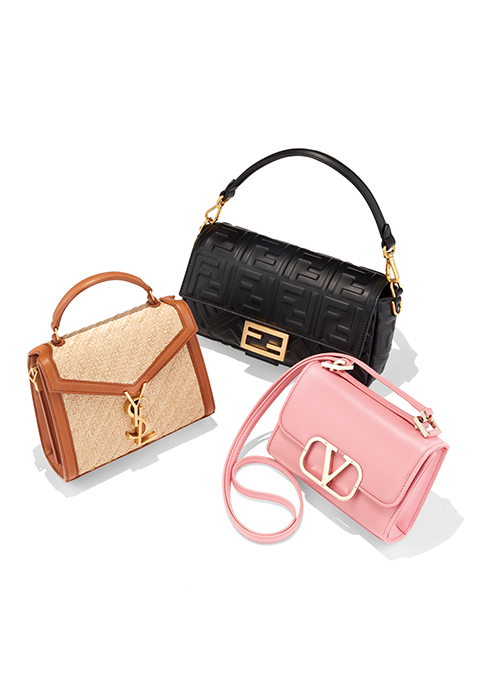 탈착 가능한 핸들을 활용해 클러치와 토트백으로 스타일리시하게 연출할 수 있으며, 브랜드의 시그너처 FF 로고가 특징인 양가죽 소재의 바게트 백 4백만원대 펜디. 문의 02-544-1925.