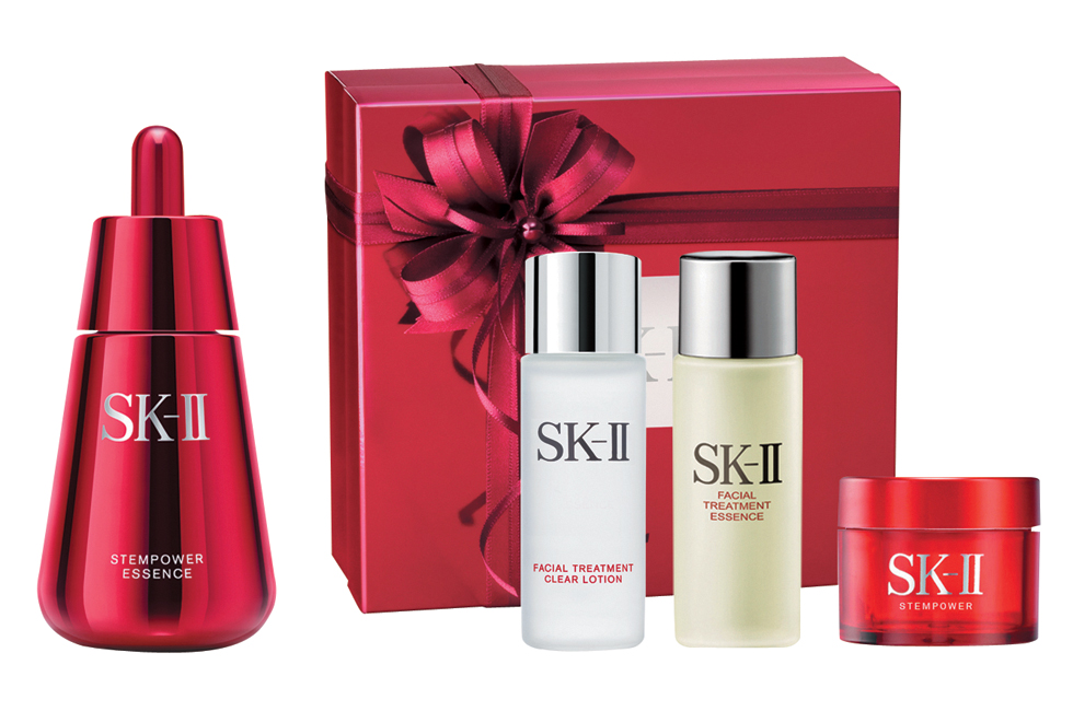 페이셜 트리트먼트 클리어 로션과 에센스 등을 샘플로 담은 ‘스템파워 크림 100g, 50g 세트’, ‘SK-II 레드 에센스 세트’로 구성했다.