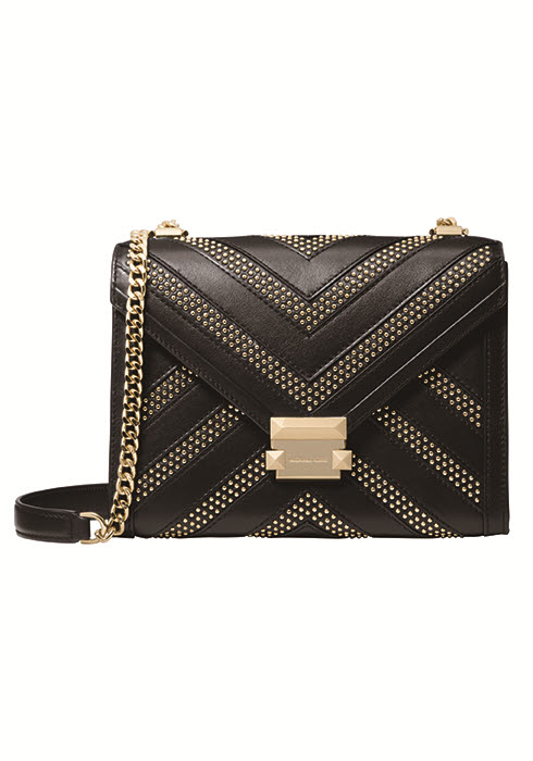 마이클 코어스의 위트니(Whitney) 백이 홀리데이 시즌을 맞아 눈부시게 변신했다. 위트니 위에 피어난 꽃 모양의 가죽 아플리케, 금색과 은색으로 반짝이는 비즈, 스터드가 홀리데이 룩의 완벽한 짝이 되어줄 것이다.