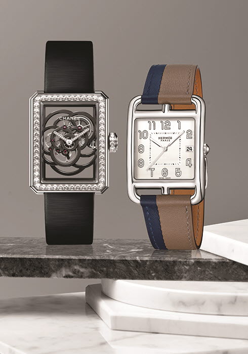 에르메스 케이프 코드 TGM 비콜로르 멀리서 봐도 한눈에 에르메스 시계임을 알 수 있을 정도로 DNA가 확실한 케이프 코드가 올해 탄생 26주년을 맞이했다. 에르메스가 선보인 신제품 중 가장 핵심인 케이프 코드는 무엇보다 에르메스만의 독보적인 가죽 장인 정신을 느낄 수 있는 스트랩에 주목해야 한다. 정교하게 시계의 무브먼트를 완성하듯 가죽 스트랩 역시 모든 공정이 에르메스 공방에서 이루어진다. 특히 바젤월드에서 선보인 투톤 컬러 스트랩은 보기에도 세련될 뿐 아니라, 에르메스 가죽 공방의 정교한 기술력을 고스란히 담은 제품이라 더욱 가치 있다. 문의 02-3015-3281