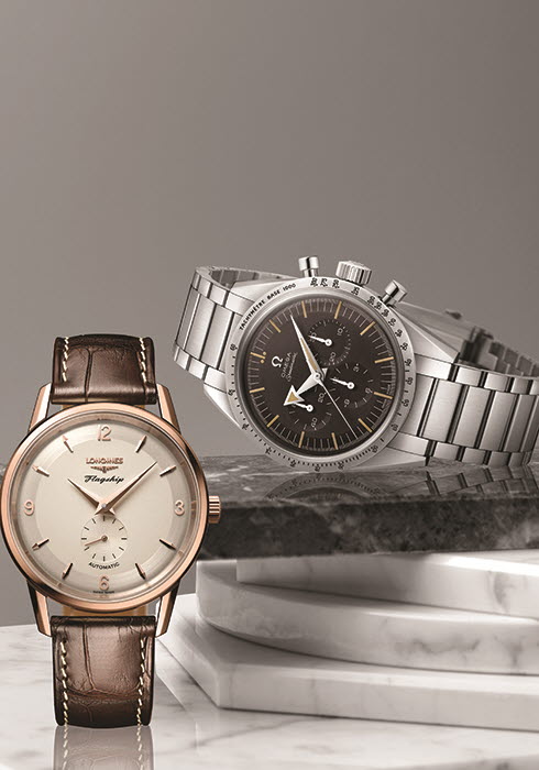 론진 플래그십 헤리티지 60주년 1957-2017 올해 창립 1백85주년을 맞이한 론진은 역사적인 한 해를 기념하기 위한 전설의 워치를 부활시켜 복각 워치 트렌드의 주역이 되었다. 특히 론진의 베스트셀러 워치인 플래그십 워치의 탄생 60주년을 기념해, 스위스 본사에 보관되어 있는 플래그십 모델에서 영감을 받아 출시하는 헤리티지 60주년 제품은 오리지널 버전과 동일하게 뒷면에 플래그십 선함 모티브를 새겨 특별함을 더했다. 브라운 가죽 스트랩의 빈티지한 디자인이 매력적인 시계로, 배우 케이트 윈즐릿이 직접 선택해 착용할 정도로 남성은 물론 여성이 착용해도 멋스럽다. 문의 02-3149-9532