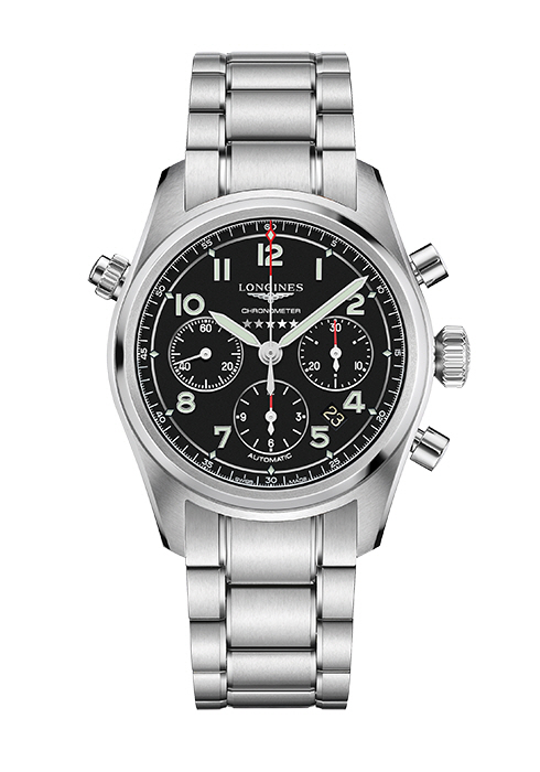 론진의 스피릿 컬렉션도 마찬가지. 비행 역사상 영광의 시대를 재현하는 동시에 현대의 미학 코드와 진보한 기술력을 담았다. 새틴 폴리싱 처리한 지름 42mm의 스틸 케이스에 COSC 인증을 받은 오토매틱 칼리버 L688.4를 장착해 정교한 크로노그래프 기능을 제공하며, 다이얼 위 12시간 카운터, 30분 카운터, 60초 카운터가 균형 잡힌 모습으로 자리한다. 어둠 속에서도 환하게 빛나도록 슈퍼 루미노바 처리한 아라비아숫자 인덱스와 핸즈, 가독성이 뛰어난 커다란 날짜창, 과장된 크기의 크라운 등 파일럿 워치의 특징이 두드러지는 매력적인 피스다. 4백10만원. 문의 02-310-1597