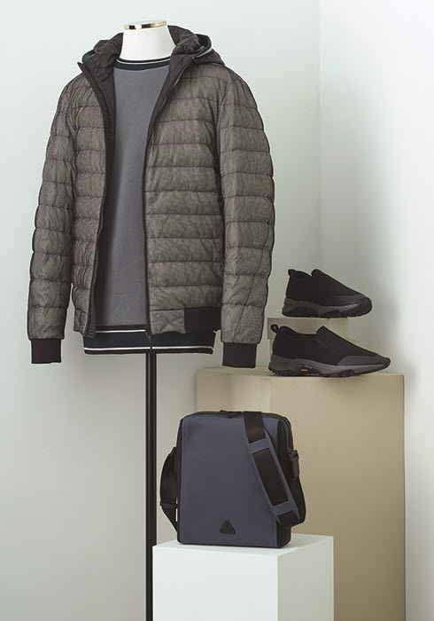 | Active wear최고급 헝가리 구스를 사용해 뛰어난 보온성을 자랑하며 스포티하면서도 미니멀한 디자인의 웰딩 다운 베스트. 탈착할 수 있는 후드 패널이 있어 후드형 베스트로 연출하거나, 후드를 떼어내고 심플한 베스트로 활용할 수 있다. 62만원. 후드 안쪽의 웰딩 디테일과 니트 밴딩의 컬러 포인트 등 랑방스포츠만의 감성을 느낄 수 있는 울 후드 톱 29만원. 엠보 처리한 이탈리아 최고급 가죽에 다이내믹한 패턴을 더해 스포티한 감성을 자아내는 엠보 레더 백팩. 모든 장식에 유니크한 러버 코팅 도금을 사용했다. 58만원. 모두 랑방스포츠. | Luxury sportism최고급 헝가리 구스 솜털을 90% 사용해 가벼우면서도 보온성이 뛰어난 초경량 메시 다운 패딩. 복원력이 우수한 소재와 충전재를 사용해 돌돌 말아 가방에 넣었다 꺼내도 패딩의 볼륨이 살아난다. 72만원. 맨투맨 끝단에 컬러 포인트를 더한, 겨울철에 활용도가 높은 배색 맨투맨 25만원. 부드럽고 탄력 있는 저지 소재가 발을 감싸는 디자인으로, 양말을 신은 듯 편안한 착용감이 큰 장점인 블랙 슬립온 35만원. 매트한 텍스처의 고무 코팅 기술을 더한 이탈리아산 가죽과 저지 소재를 믹스해 고급스러우면서도 스포티한 무드를 발산하는 미니 메신저 28만원. 모두 랑방스포츠. |