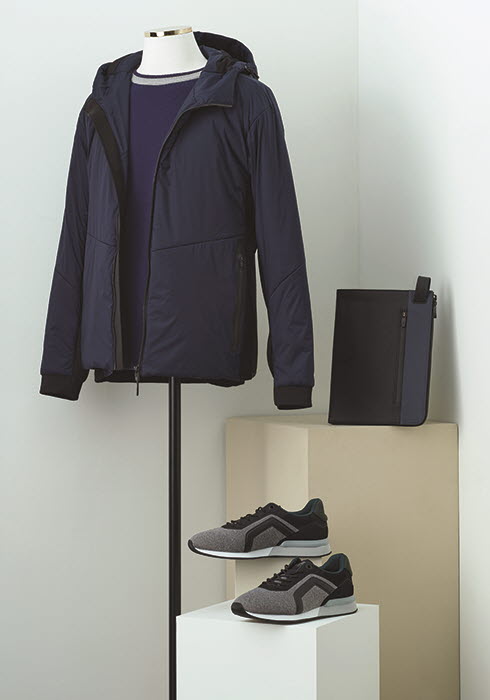 | Easy chic점퍼의 편안함과 코트의 멋스러운 스타일 및 보온성을 모두 갖춘 하이브리드 롱 점퍼 코트. 기능성이 뛰어난 것은 물론 간결하지만 남다른 유니크함을 갖춘 하이브리드 아우터는 랑방스포츠만의 DNA를 여실히 엿볼 수 있는 아이템이다. 이너에 탈착할 수 있는 레이어링 라이너가 있어 날씨에 따른 활용도가 높다는 것이 장점. 85만원. 저지와 니트 소재를 유니크하게 믹스한 미니멀한 디자인의 그레이 톱 32만원. 다양한 컬러의 가죽과 메시, 저지 소재 등을 믹스해 세련된 포인트를 더하는 컬러 믹스 러너. 비브람 솔을 사용해 편안한 착용감을 선사한다. 45만원. 모두 랑방스포츠. | Modern casual소매 끝의 밴딩 디테일, 웰딩 포켓 등 랑방스포츠만의 스포티한 디테일이 돋보이는 절개 패딩 점퍼 62만원. 스포티한 느낌을 주는 배색 니트 29만원. 손잡이의 길이를 조절할 수 있어 다양하게 연출 가능한 배색 클러치. L자형 지퍼로 여닫기 편리하게 디자인했다. 28만원. 내구성 높은 저지 소재에 봉제선 대신 핫멜트 디테일을 더해 깔끔하면서도 스포티한 무드를 선보이는 저지 핫멜트 러너. 비브람 솔을 적용해 가볍고 착용감이 편안하다. 38만원. 모두 랑방스포츠. |