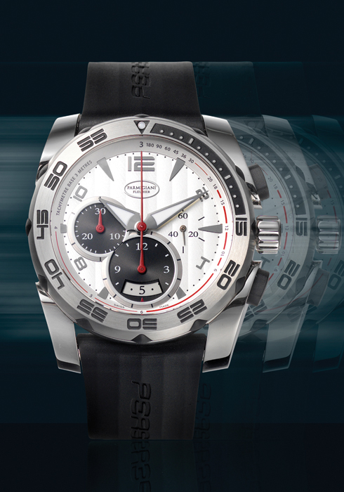 이탈리아 럭셔리 요트 제조 브랜드 펄싱(Pershing)과 파르미지아니의 컬래버레이션 제품. 200m 방수 기능을 갖췄고 러버 소재 크로노그래프 푸시 버튼, 한 방향으로 회전하는 베젤까지, 스포츠 워치에 필수적인 요소를 모두 탑재했다. 2천5백만원대.