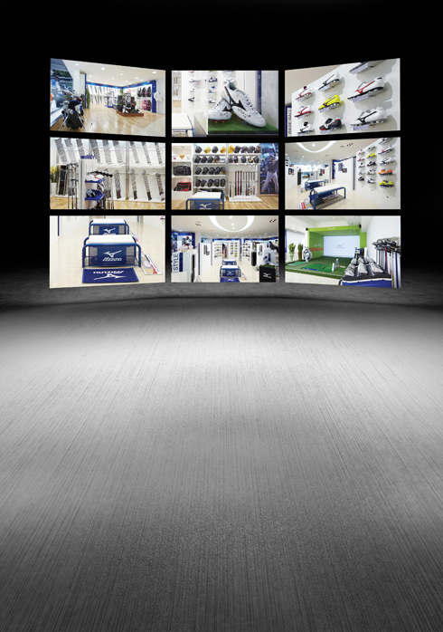 미즈노 플래그십 스토어 전경. 지상 1층은 골프, 축구, 야구, 인도어 스포츠 등의 용품을 한 번에 둘러볼 수 있도록 구성되었고, 지하 1층은 피팅과 레슨이 동시에 이루어지는 특별한 서비스가 준비되어 있다.