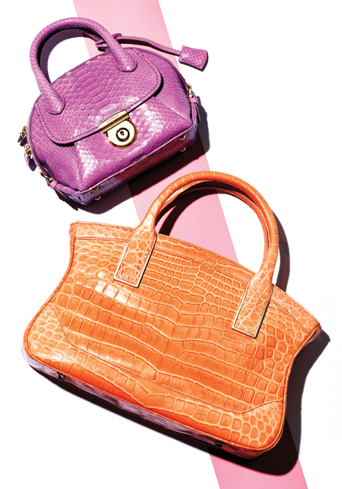 Exotic charmer (위부터 아래로) 페라가모 피암마 미니 백 클래식한 디자인으로 꾸준히 사랑받고 있는 피암마 백의 하이엔드 라인으로, 비단뱀가죽에 우아하고 사랑스러운 라벤더 컬러를 더했다. 16X16cm 3백만원대. 문의 02-2140-9642 콜롬보 비아 델라 스피가 밀로 백 ‘밀로의 비너스’에서 영감을 받은 구조적인 형태와 유려한 곡선 라인이 특징인 악어가죽 토트백. 33X22cm 2천5백80만원. 문의 070-7130-9200 Exotic charmer (위부터 아래로) 셀린느 러기지 백 양옆의 날개가 펼쳐진 듯 독특한 실루엣이 특징이다. 블루, 네이비, 그레이의 컬러 조합으로 세련미를 강조했다. 26.5X40cm 3백만원대. 문의 02-3213-2298 발리 소메 폴드 백 여성스러운 컬러 조합과 미니멀한 형태가 돋보이는 토트백. 넉넉한 수납공간과 폴더 형식의 디자인이 안정적인 착용감을 선사한다. 34X24cm 2백90만원대. 문의 02-3467-6213 버버리 미니 비 백 핸드 페인팅한 가죽 소재의 미니 백으로, 강렬한 원색 배치와 페이턴트 트리밍이 특징. 핸드 페인팅한 모서리에서 정교함이 느껴진다. 21X19cm 3백70만원. 문의 02-3385-6536