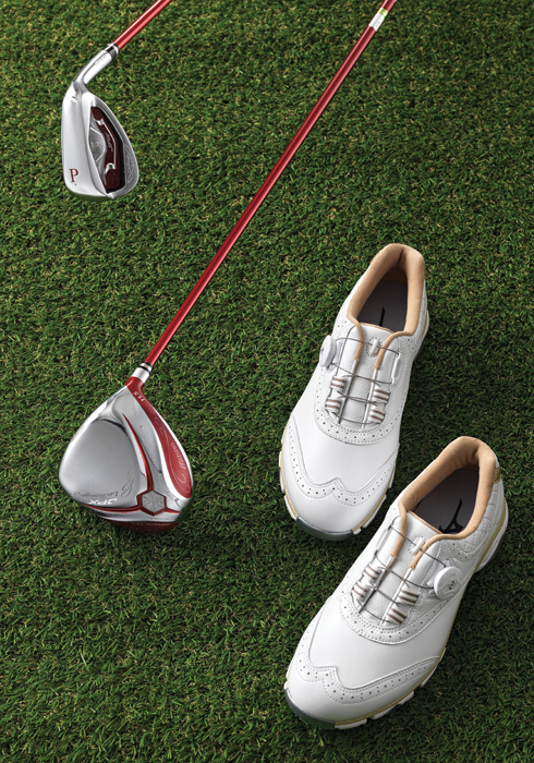 Mizuno La Rouge필드 위의 여성 골퍼를 더욱 아름답게 보이도록 붉은 립스틱에서 영감을 받은 핫 레드 컬러의 라 루즈 시리즈. (맨 위부터 아래로) 한국 여성 골퍼의 스윙 스타일과 신체적 특징에 맞게 제작됐으며, 반발 성능이 뛰어난 L자형 컵 페이스를 장착한 ‘라 루즈 여성용 아이언’ 1백80만원(세트 기준). 오로치 샤프트를 채택, 버트 쪽으로 무게중심을 이동해 편안하게 스윙할 수 있도록 하고, 헤드 스피드를 높여준다. 브랜드의 독자적인 기술력인 하모닉 임팩트 테크놀로지로 앰팩트 시 진동수와 울림 시간을 제어해 청명한 타구음을 자랑하는 ‘라 루즈 여성용 드라이버’ 70만원, 보아 클로저 시스템의 초경량 골프화 24만원. 모두 미즈노.